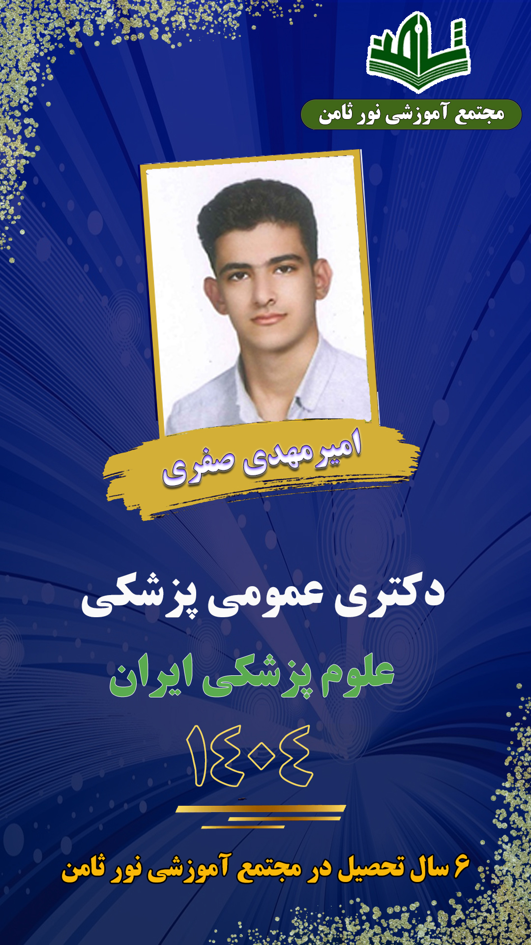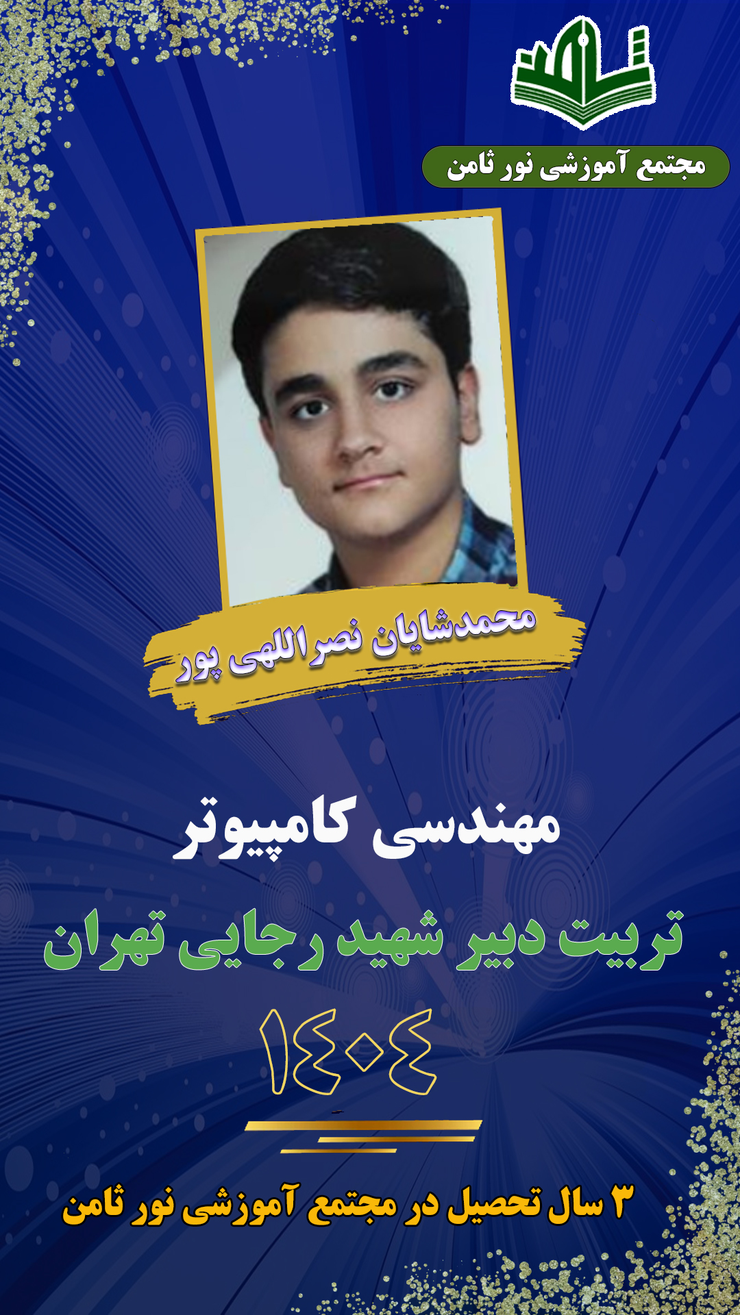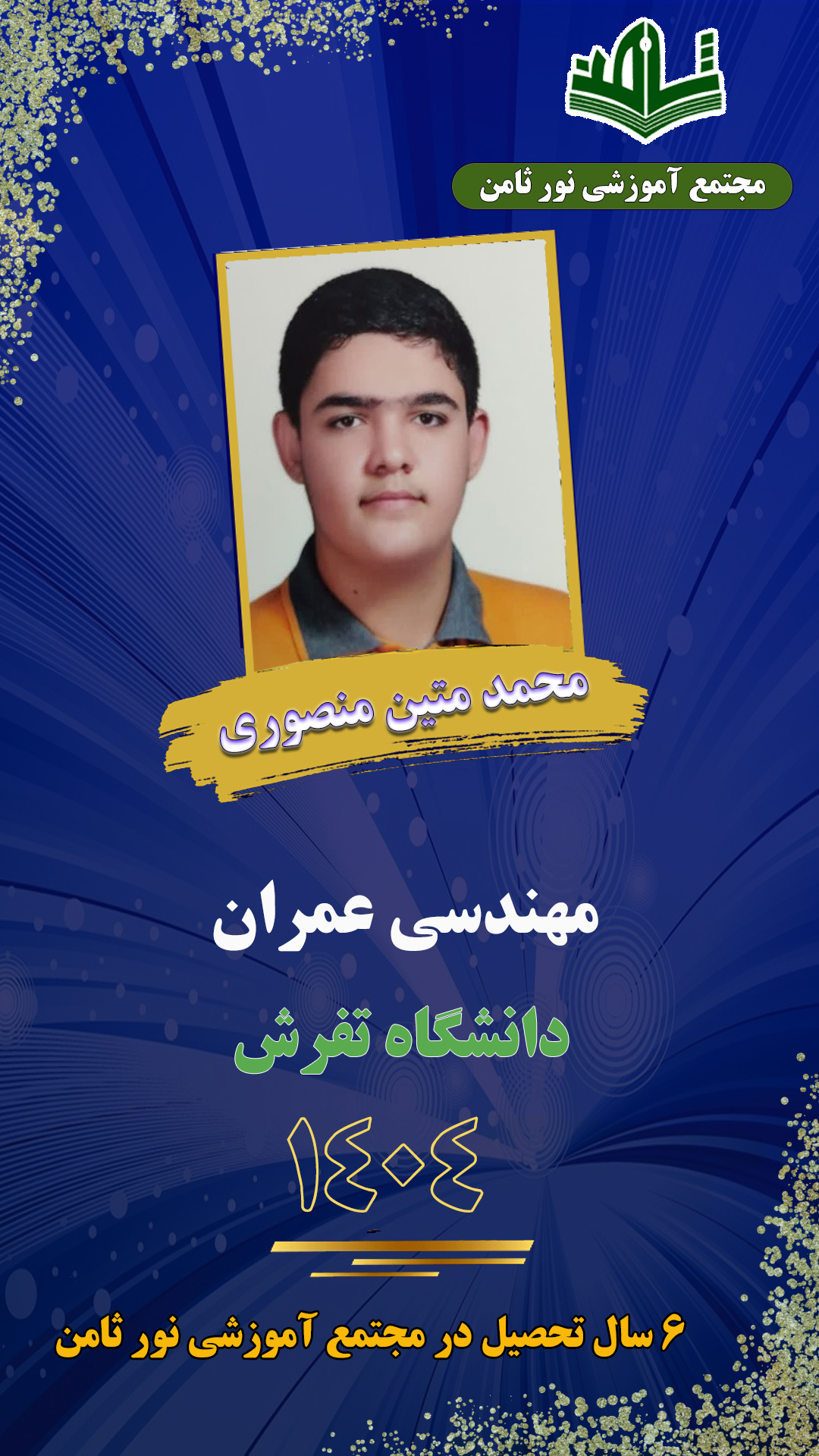 دبیرستان پسرانه غیر دولتی نور ثامن دوره اول از سال تحصیلی 93-92با عنایت به توجهات خاصه حضرت ثامن الحجج با پذیرش سه کلاس پایه هفتم شروع به فعالیت نمود.